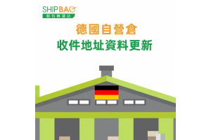 即日起德國自營倉收貨地址已更新,已填寫舊地址的貨物不受影響,Shipbao仍會處理轉寄。及後請填寫更新地址,否則有機會影響貨物轉運。