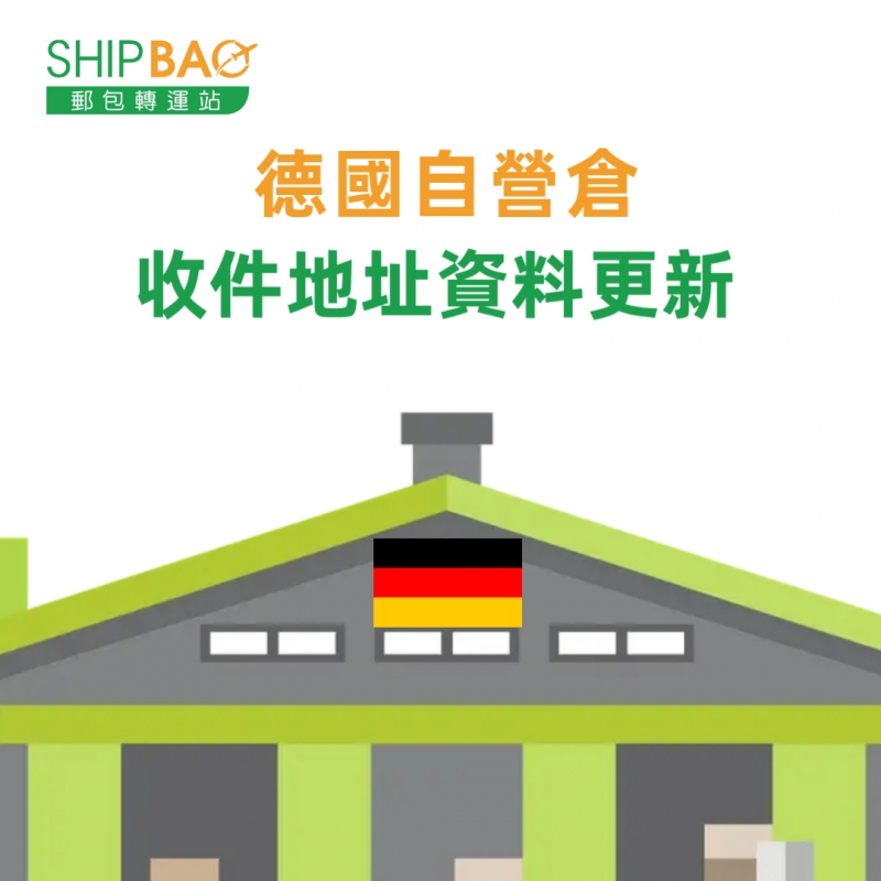 親愛的Shipbaoer, 即日起德國自營倉收貨地址已更新,已填寫舊地址的貨物不受影響,Shipbao仍會處理轉寄。及後請填寫更新地址,否則有機會影響貨物轉運。 新倉地址已更新到《倉庫地址》頁面,Shipbaoer請留意更新各網購平台預設的送貨地址及發票收貨人資料。 新地址啟用日期 : 2026年3月18日 如有任何查詢, 請聯絡Shipbao客服, 謝謝。 Shipbao團隊