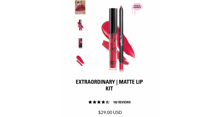 每款kylie cosmetics唇膏套裝,都包括有啞光液體唇膏一支,以及和它顏色相配的唇線筆。在眾多款液體唇膏套裝中,這款為kylie jenner的最愛! 也是您打造完美"Kylie Lip''的秘密武器。