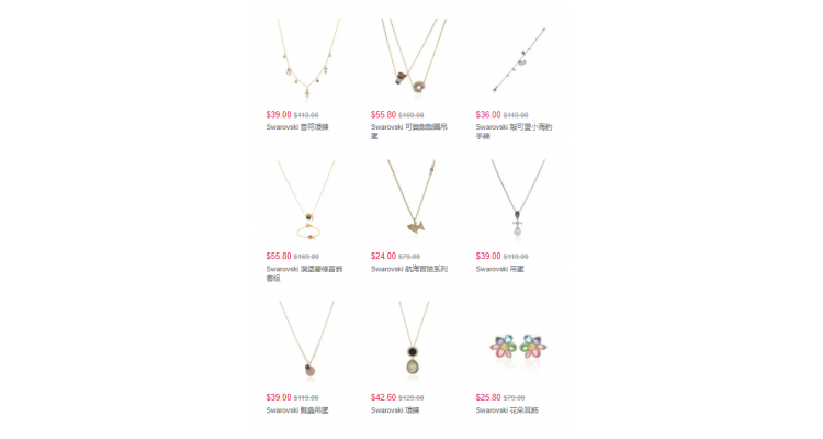 ShopWorn現有Swarovski精選首飾熱賣低至2.8折+額外6折,需要使用獨家折扣碼DMSV40 。