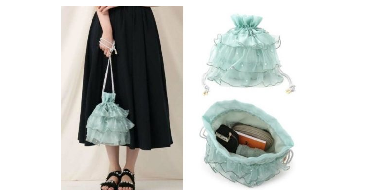珊瑚收納束繩袋這款超夢幻的束繩袋綴有許多繽紛的透光珍珠感珠珠,手提出門隨著光影折射就像美人魚的尾鰭一樣閃耀夢幻光彩。