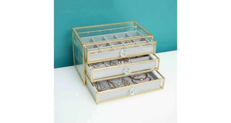 呢款抽屜真係實物比圖美! 有多種唔同既絨盒可以揀! 抽屜又有金色邊做點綴即刻成個感覺高級左! 就算唔要絨盒咁做普通收納都好ok! 無絨盒就只係要39.8rmb 一層真係超級抵! 有興趣整理家居小物朋友必入!